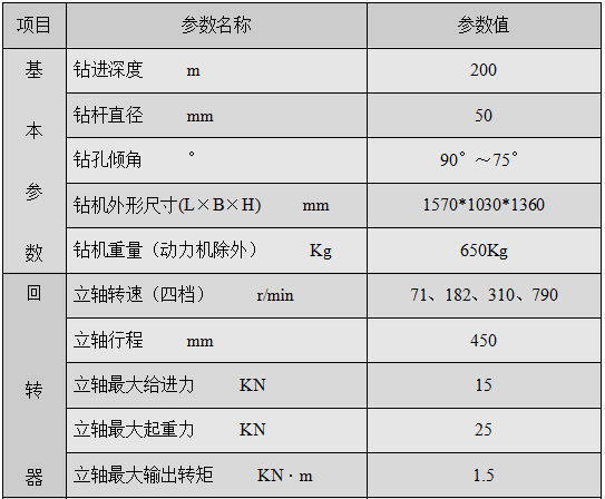 1.采用液压送料装置,提高了钻井效率,降低了劳动强度。